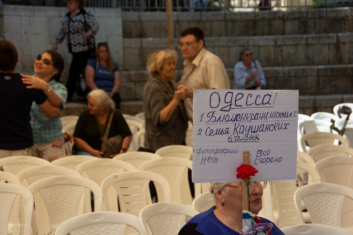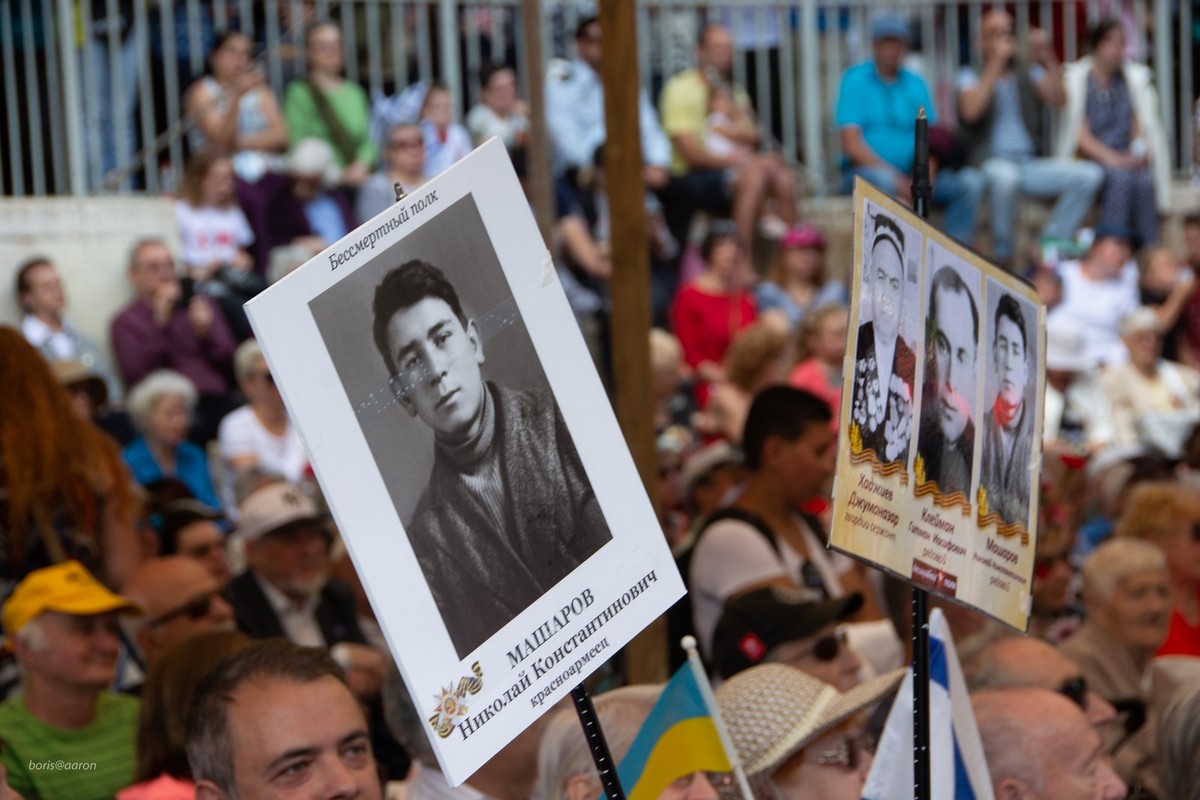 Большое спасибо за фоторепортаж из Хайфы. На лицах празднующих читается безмерная благодарность тем, кто своим ратным подвигом на фронтах всемирной битвы воевал с фашизмом, и глубокая, незаживающая десятилетиями скорбь, по погибшим. Победа над фашизмом неподвластна времени, и она очень дорога ныне живущим. Каждая фотография впечатляет контрастом вчерашней войны и сегодняшнего шаткого, но мира на нашей планете. Поразила последняя фотография - одиноко сидящая женщина с самодельным плакатом и одной, алой гвоздикой. Фотографий нет, всё сгорело... Но на заднем плане танцуют, улыбаются... А значит жизнь продолжается... Значит сегодня мы все сегодня должны быть достойны их великого подвига своими делами и поступками через благоразумие, терпение, созидательность!