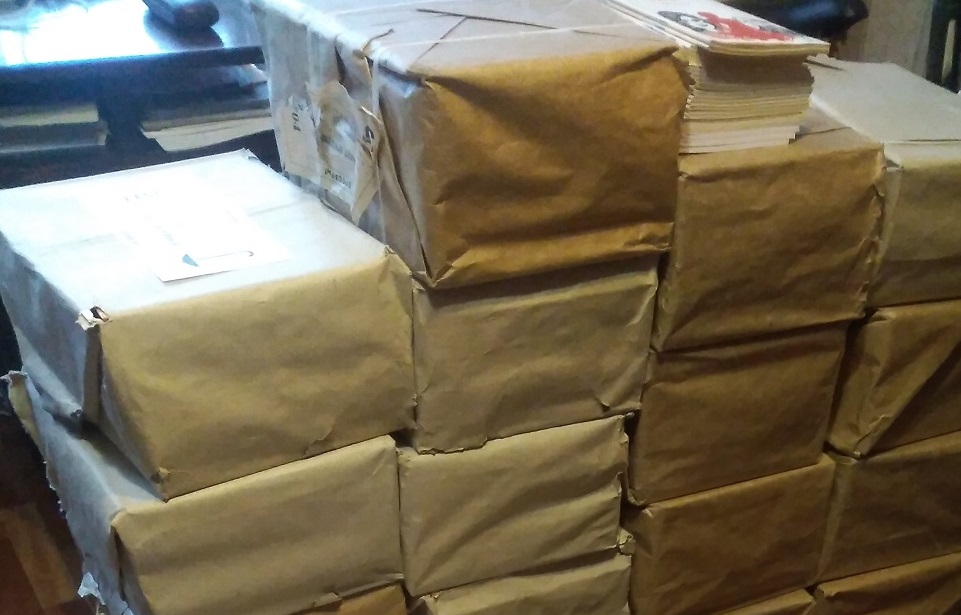 А на полу прямо в нераспечатанных упаковках горы книг самого Ильи Моисеевича. Очень плодовитый автор.