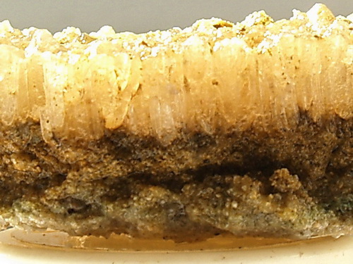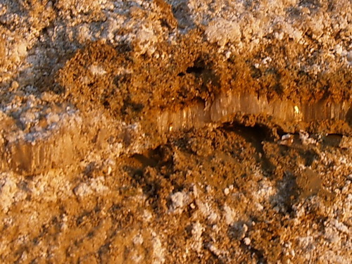 Фото. Природный кристаллогенезис алюмокалиевых квасцов и квасцового камня из сульфатсодержащих водных растворов со специфическим сероводородным запахом, просачивающихся сквозь расщелины береговых глиняных отложений. (Азовское побережье. Август 2015 года).