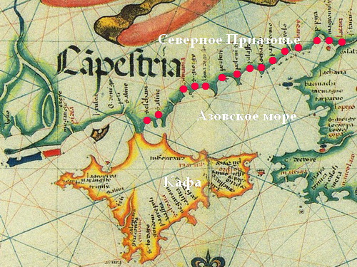 Поэтому логичным будет предположить, что квасцы доставлялись в крымскую Кафу на маломерных судах откуда-то из близко расположенных к ней областей, вероятнее всего – из Приазовья. А уже потом перегружались на крупные суда, отплываемые в сторону Апеннин и Пиренеев, где располагались в то время основные центры текстильного и кожевенного производства средневекового мира.