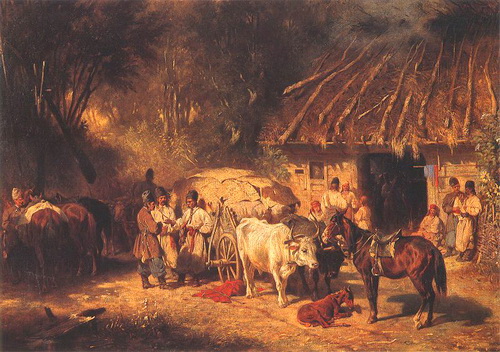 Фото. Юзеф Брандт (1841 - 1915), «Чумаки на привале перед корчмою». 1865 г.