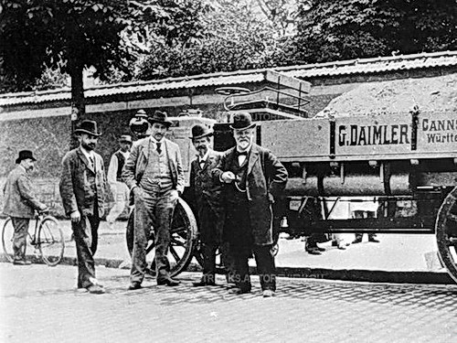 Фото 2. Всемирная выставка в Париже, 1898 год. Справа налево - мировые знаменитости: Готлиб Даймлер (Gottlieb Wilhelm Daimler), Вильгельм Майбах (August Wilhelm Maybach), уроженец Бердянска (Андреевки Бердянского уезда) Таврической губернии Борис Луцкой (второй слева) и финансист Гуго Фишер.