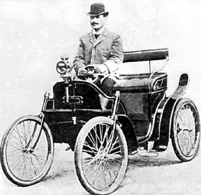 Фото 3. 1899 год. Инженер Борис Луцкой (1865 – Дата смерти не известна) в автомобиле своей конструкции на Всемирной выставке в Берлине.