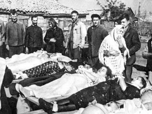 Эту фальшивку до сих пор публикуют местные фальсификаторы истории города в различных изданиях к юбилею города и публикациях. Сам Евгений Халдей об этом снимке никогда не упоминал, на его сайте много знаменитых на весь мир фото, но «мальчика» со звездой на лбу нет. Так в далеком 1943 году сталинские пропагандисты родили «распятого мальчика», но оказалось, что это был снимок девочки…Понятно, что смершевцы сами придумали версию убийства этой семьи немцами, и открытие архивов спецслужб в ближайшем будущем расставит все точки над і. В нашем распоряжении есть разные копии документов из областного архива, а также личного архива краеведа Е. Денисова.