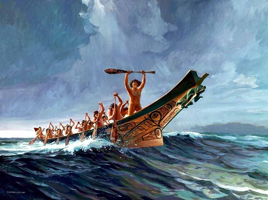 Ветер и течение медленно несли нас в сторону какого-то пролива, под острым углом отходившего от того, в котором всё приключилось. Отец не препятствовал этому, только велел быть в готовности отдать якоря в случае опасности. Скрыться с глаз испанцев было совсем не лишним. Мы уже довольно долго двигались по этому проливу с почти отвесными скалистыми берегами. Пристать было негде, но куда-то же он должен был привести. Наконец показался пологий берег с широким, покрытым мелкой галькой пляжем. Вполне подходящее место для стоянки. Отец скомандовал поднять оствшийся целым парус на грот-мачте и направил нашу “Наяду” к берегу. И тут, непонятно откуда, нам навстречу вылетели шесть больших каноэ и окружили наш кораблик. Индейцы не проявляли никакой враждебности, поэтому, когда они подошли вплотную, отец громко спросил по-аравакски: “Добрые люди, кто вы?!”. И получил ответ: “Мы из народа таино, добрый человек”.