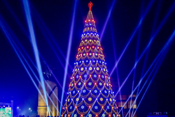 Она достигает 20 метров в высоту и украшена множеством ярких огоньков.