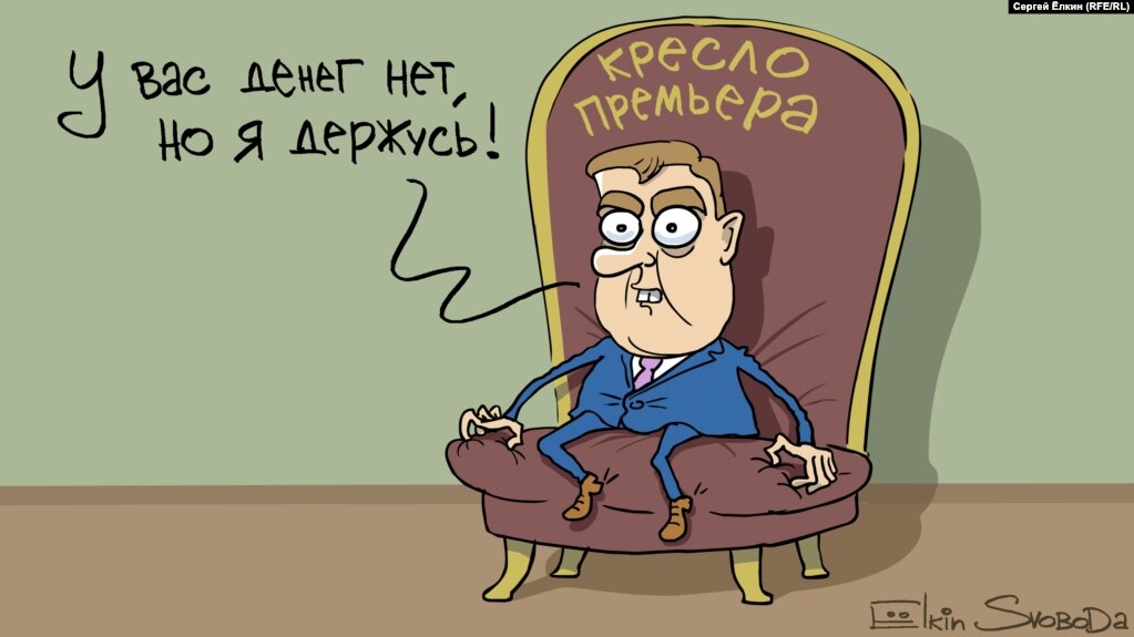Карикатура Ёлкина, основанная на фразе Димона к народу: "Денег нет, но Вы держитесь".