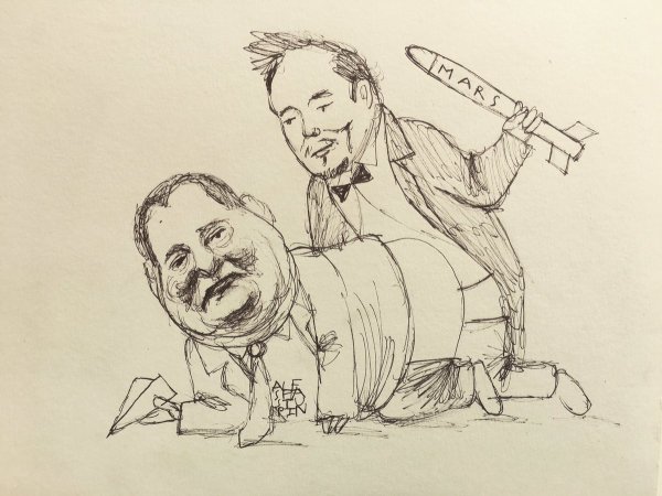 Успешный покоритель космоса Илон Маск с ракетой на Марс натрахал неудачника Рогозина.