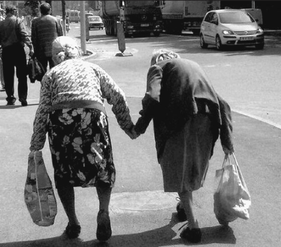 (Идем с подругой после шестидесяти лет на работу.