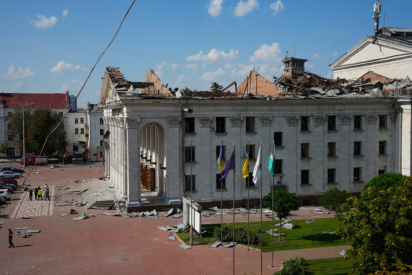 Разрушения после ракетного удара в Чернигове. Черниговский областной академический музыкально-драматический театр имени Тараса Шевченко серьезно поврежден в результате ракетного удара в субботу, 19 августа 2023 года.