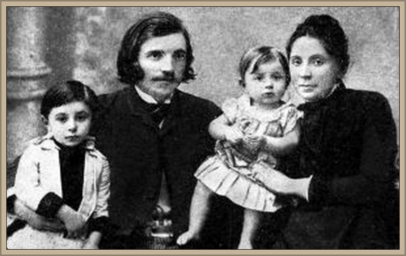 Шолом-Алейхем с женой Ольгой и детьми. Дочь богатого предпринимателя Голдэ (Ольга) Лоева вышла замуж за бедного учителя и начинающего писателя вопреки воле отца, родила шестерых детей. После смерти тестя Шолом-Алейхем получил огромное наследство, которым, к сожалению, не сумел правильно распорядиться