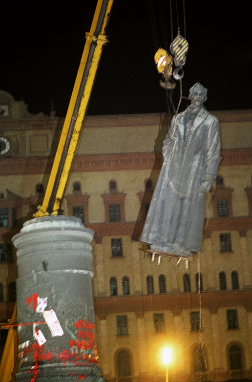 Снос памятника Дзержинскому на Лубянке, 22.08.1991 (На цоколе написано- "Хунте хана"! А ведь и правда тогда думали, что - хана...) фото из сети.