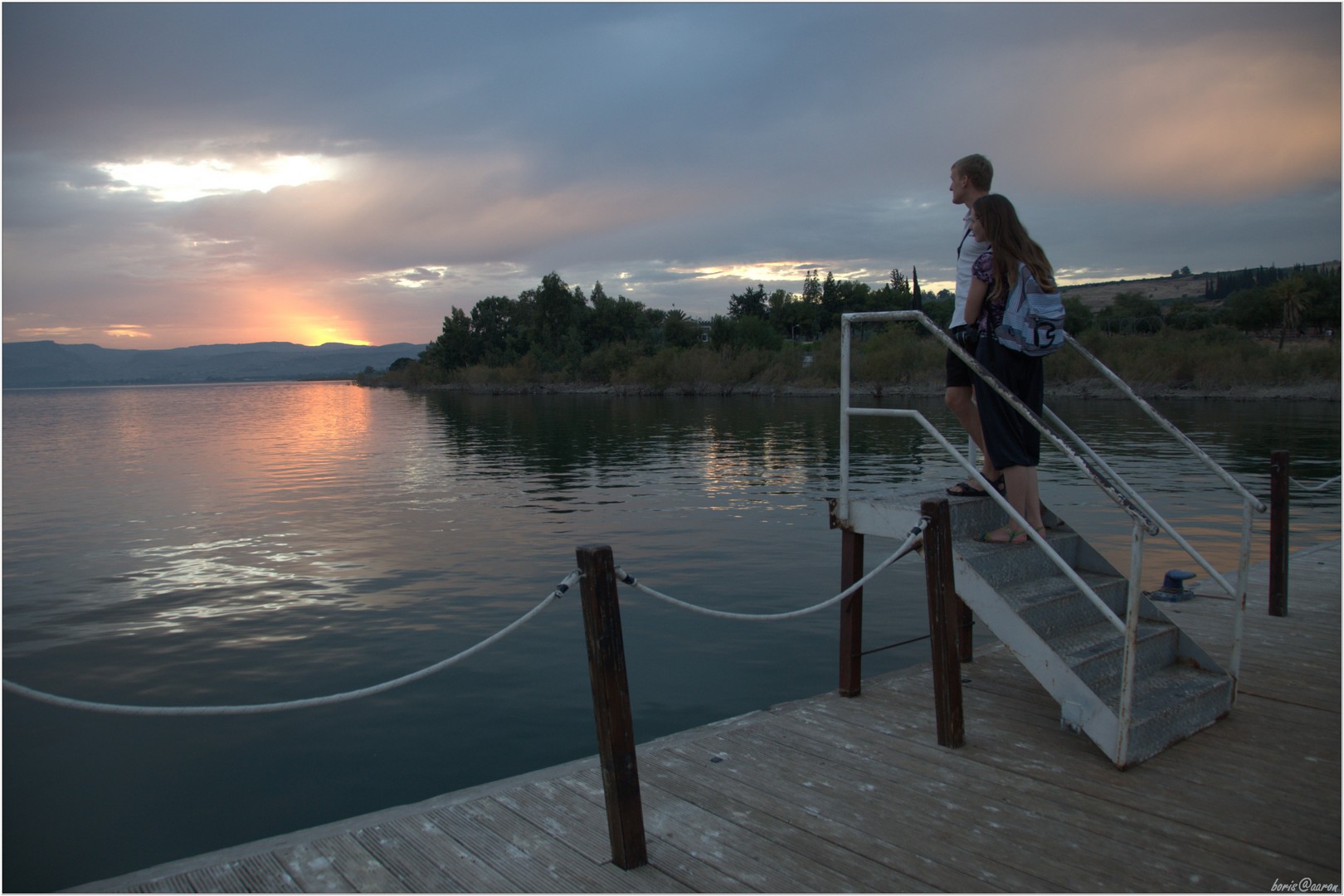 По озеру Кинерет плывут несколько кораблей с паломниками. Паломники сидят на палубе. Поют псалмы, поднимают глаза к небесам и изредка подглядывают в листочки с текстом.