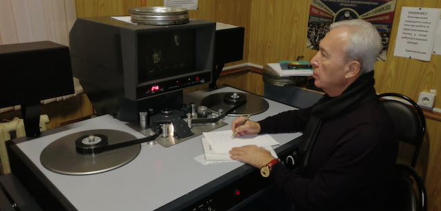 Анатолий КОРКМАСОВ за просмотром фрагментов хроники кинофильма: