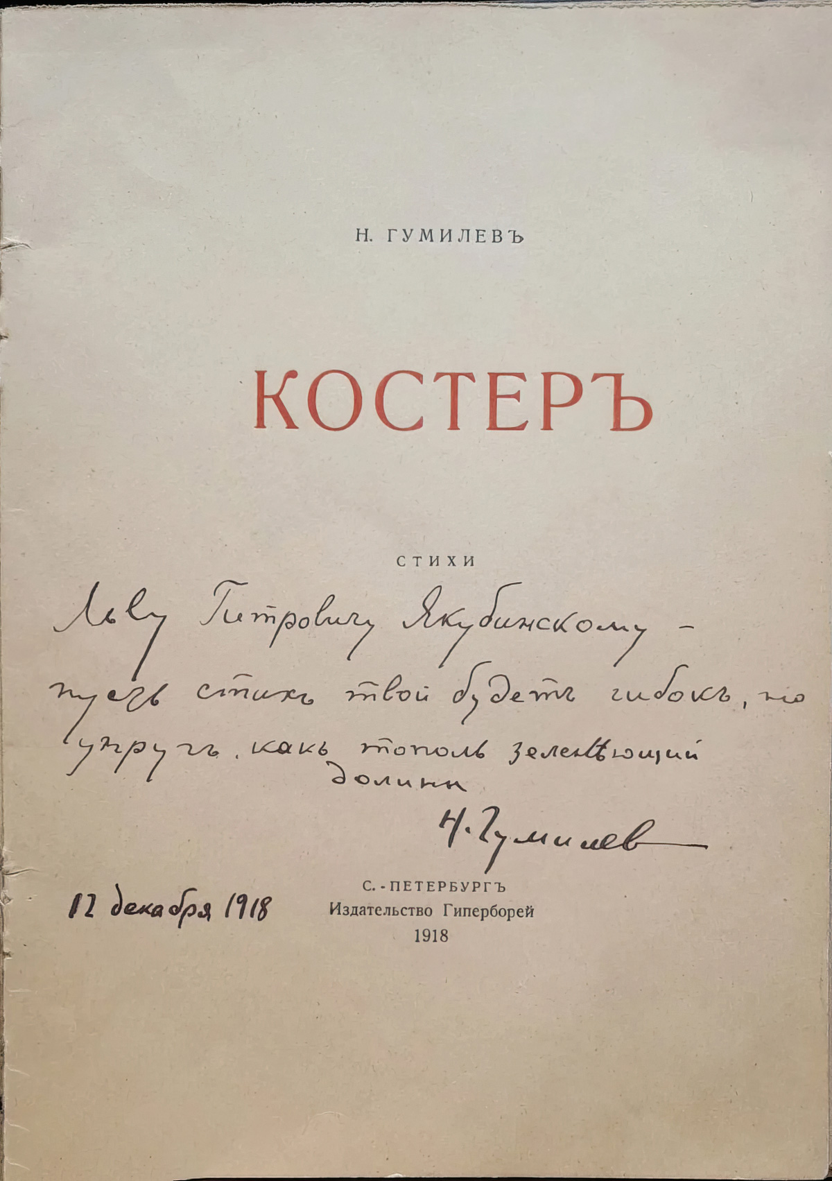 Н. Гумилев, 12 декабря 1918"