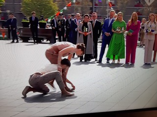 В этой части Роттердама королевскую семью встретили артисты современного балета.