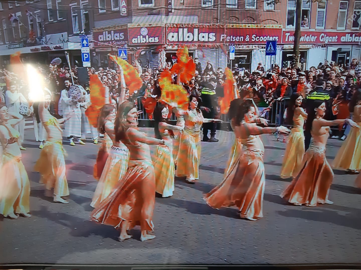 Гостей окружили танцовщицы из Карибского бассейна, вероятно, роттердамцы хотели порадовать любимицу города - королеву Максиму (урождённая аргентинка - Максима Соррегьета, род.-1971г.).