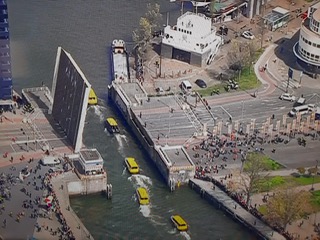 Водное такси проплывает мимо кораблей, под мостом Эразма и закончится водная экскурсия в северной части города.