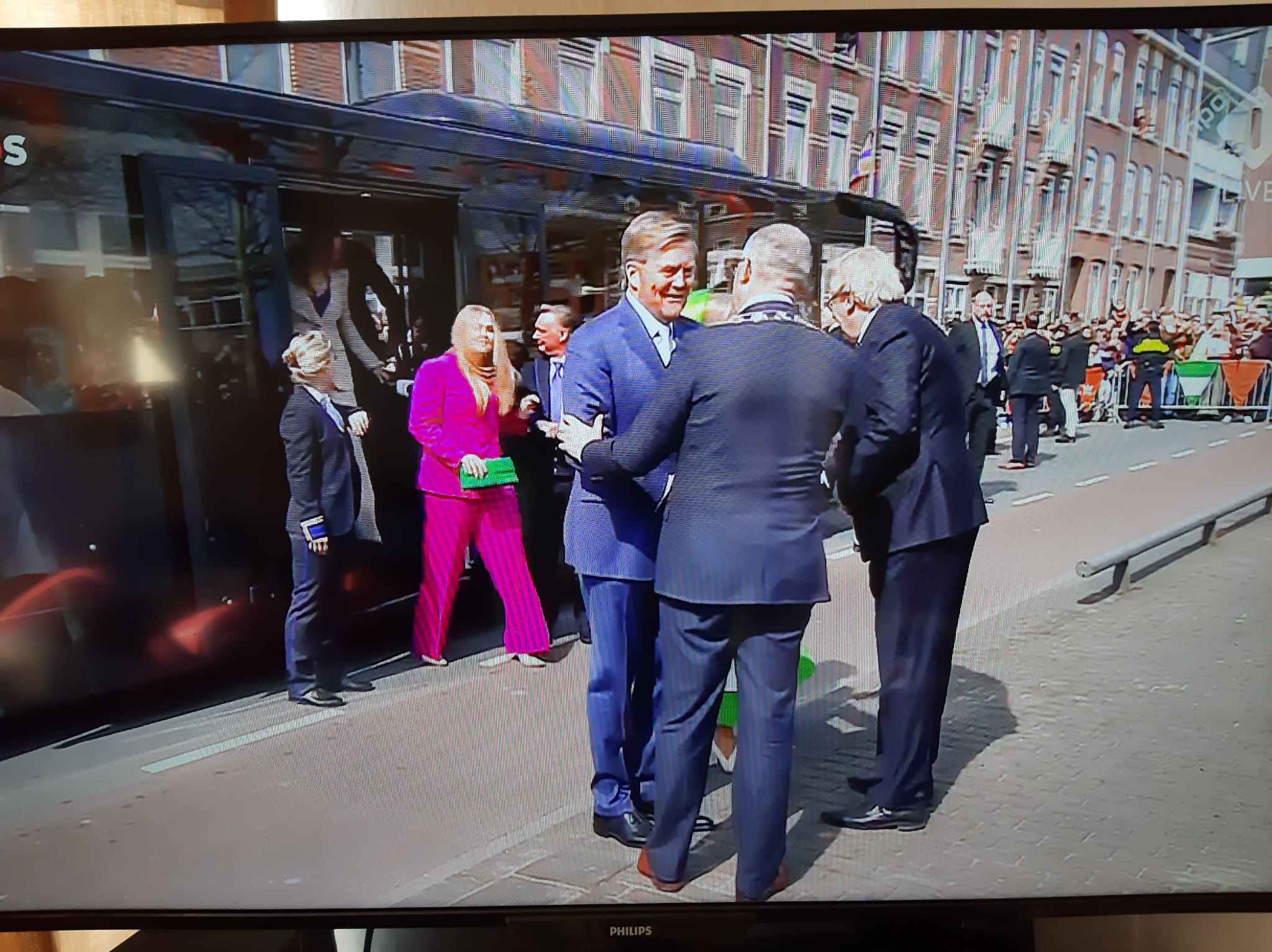 Все остальные фотографии были сделаны с телеэкрана, и хотя качество их оставляет желать лучшего, но они дают представление о визите королевской семьи в Роттердам.
