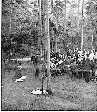 В вагоне дачного поезда Брачишников заприметил группу мужчин, среди которых выделились двое. Один, в отличие от сотоварищей, одет был с иголочки – темный сюртук, галстук и неизменная шляпа. Костюмчик другого был попроще, но его глаза были скрыты от чужих взоров дымчатыми очками. Репортер тут же подошел к ним, поздоровался со всеми за руки и заговорил с тем, кто был в сюртуке. За грохотом поездных колес Лукин, сидевший неподалеку, не слышал, о чем они говорили, но до слуха доносилось несколько раз произнесенное слово «жиды».