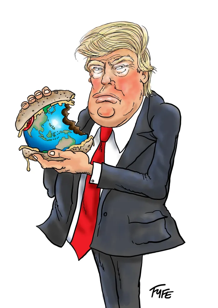 Карикатура на трампа и его жадность / https://www.andrewfyfe.com.au/2018/01/08/donaldtrump /