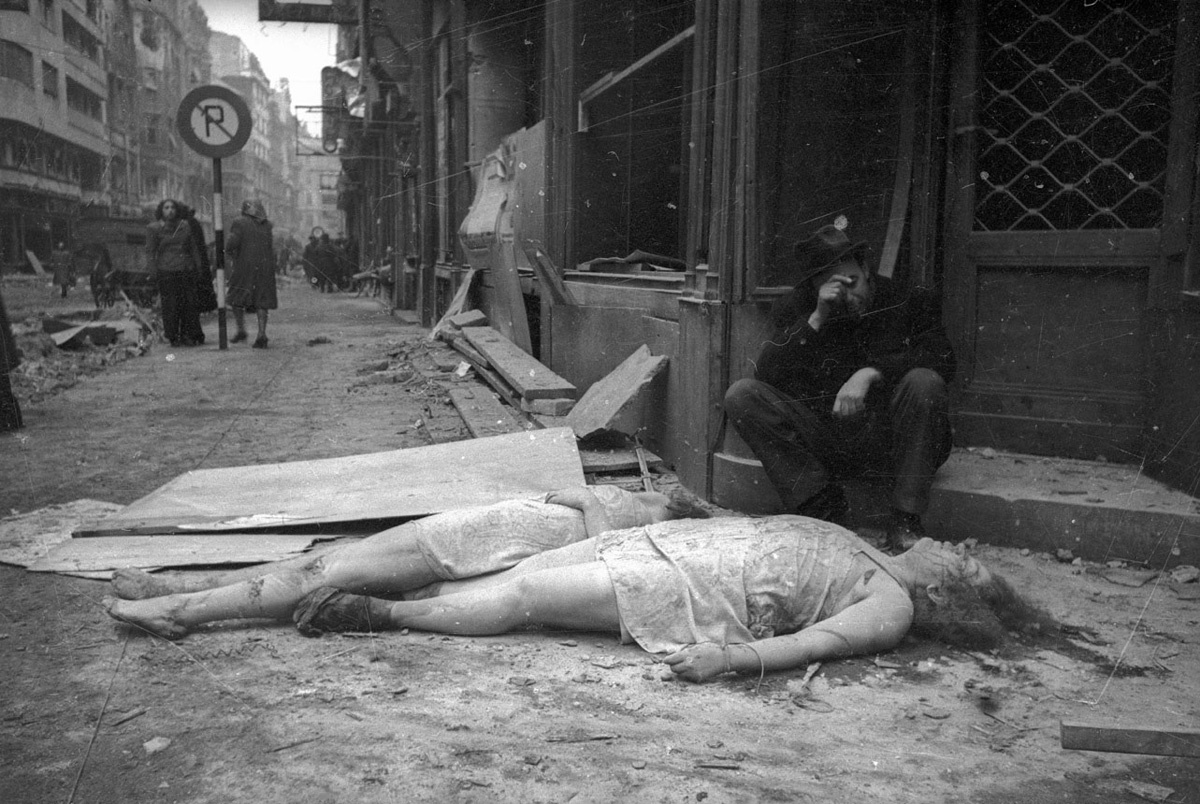 Еврейское гетто в Будапеште, тела погибших женщин , Февраль 1945г. Фото- Е.Халдей.