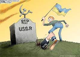 ВВП тянет руку из могилы, где похоронен СССР, чтобы удержать Украину. /карикатура из интернета