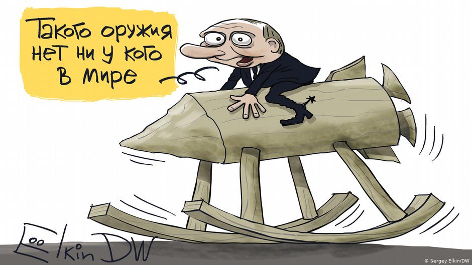 Карикатура - «Любимая игрушка Путина» в виде устаревшей ракеты