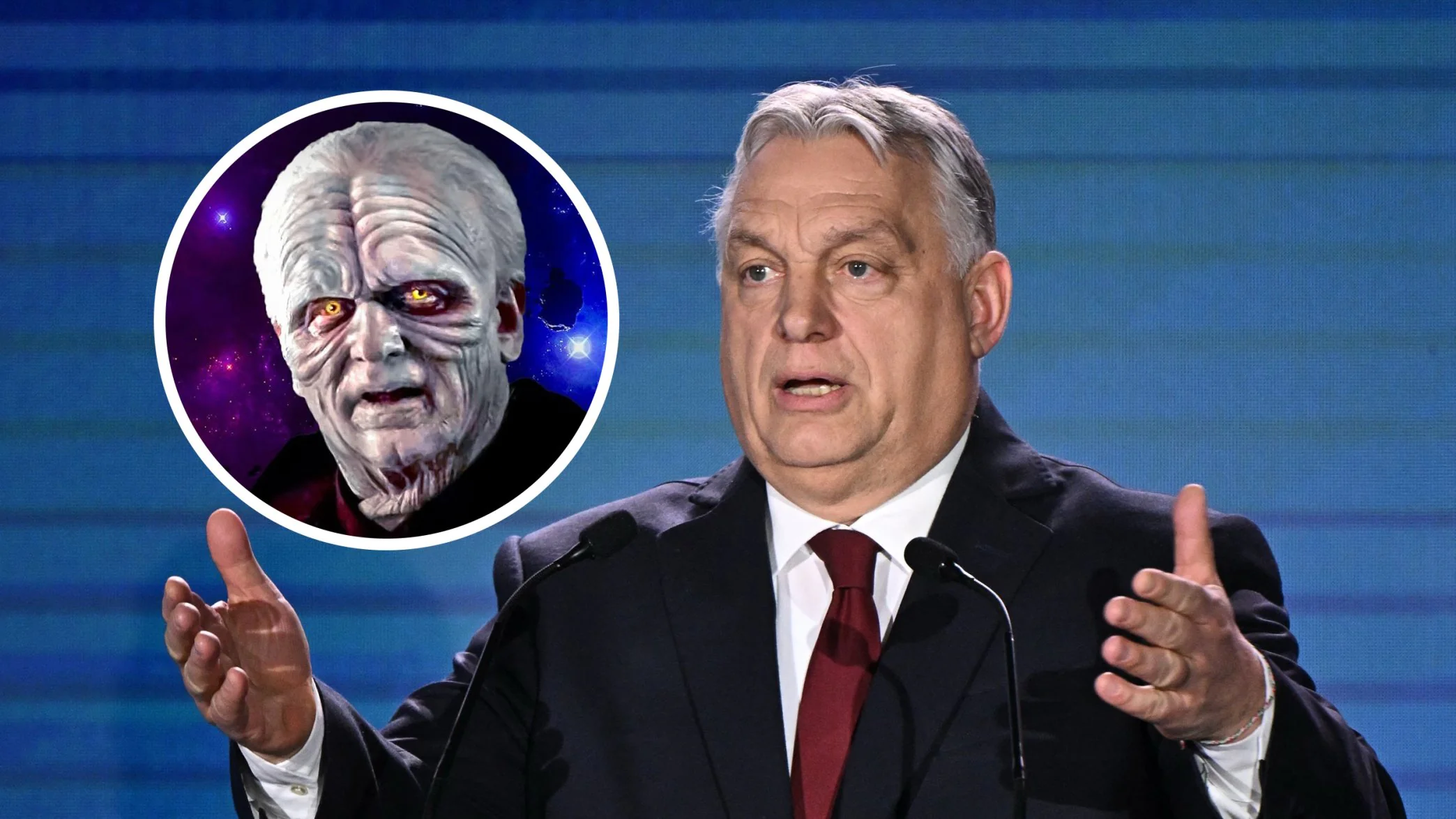 Виктора Орбана в соцсетях сравнили с персонажем "Звездных войн". /Фото Телеграф, Getty Images