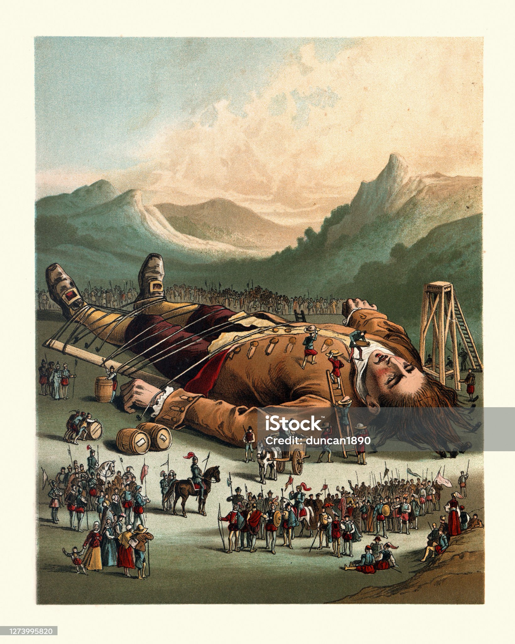 Свифт сатирически разоблачает нелепость религиозно-политических конфликтов. Знаменитый эпизод: