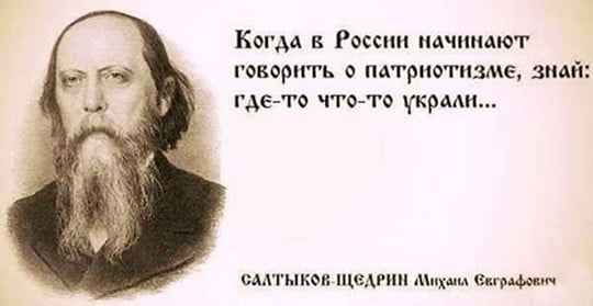 «Есть в таком государственном патриотизме, проповедуемом действующими чиновниками, бывшими и будущими, одна черта, которая подмечена ещё Салтыковым-Щедриным: что-то о патриотизме стали часто говорить, значит, сильно воруют».