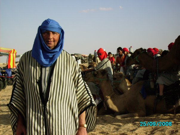 Отдыхая в Тунисе мы с женой решили съездить на экскурсию в Сахару и там покататься на верблюдах. Нас завели в шатер, где за 2 динара (40 рублей) каждый из нас получил грубый халат и головной убор – кусок материи, который нам ловко закрутили на головах.
