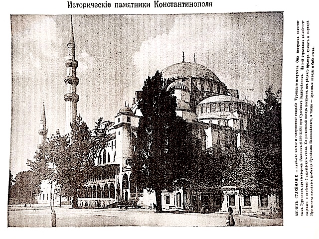 2- "Мечеть СУЛЕЙМАНИЕ ; Иллюстрация (оригинал) опубликованная в №-1 (первый год издания) газеты "Стамбульские Новости", пятница, 23 октября 1909г., - с текстом Редакции;