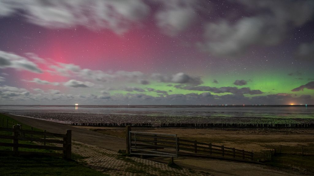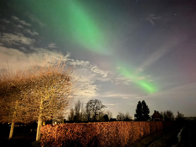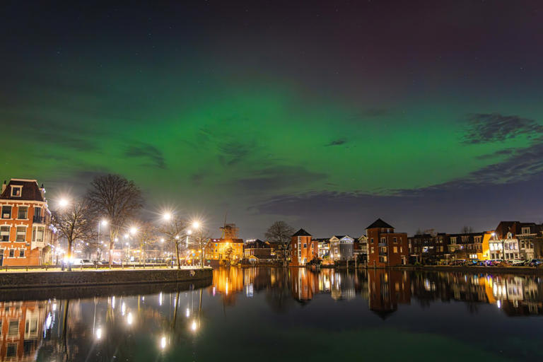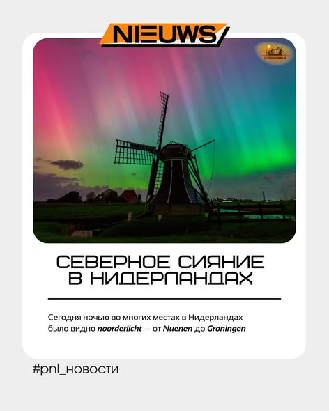 Но из-за сильной солнечной бури прошлой ночью оно появилось и в Голландии-  noorderlicht было видно от нашего Гелдропа — до Groningen. «Была сильная геомагнитная буря», — объясняют метеорологи. - «Это вызвано мощным солнечным извержением. Чем интенсивнее извержение, тем выше вероятность увидеть северное сияние».